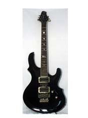 XG31- Black barbed rock body, H-S-H pickups, floating/fine tuner bridge, custom moon inlays.