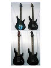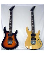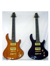 XG30- Razor thin exotic wood body, monkey grip handle, H-S-H pickups,floating/fine tuner bridge, custom moon inlays